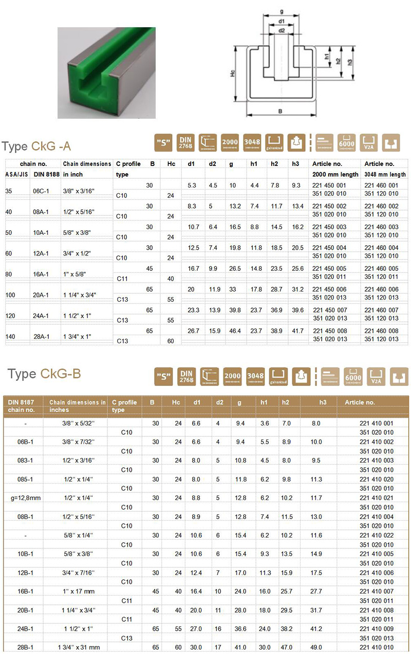 名稱:CKG型聚乙烯耐磨鏈條導(dǎo)軌